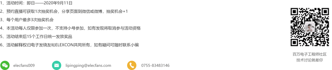 6、活動(dòng)解釋權(quán)歸電子發(fā)燒友和ELEXCON共同所有,如有疑問可隨時(shí)聯(lián)系小編