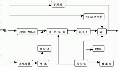 2.3.3 控制驅(qū)動:控制驅(qū)動是完成整機功能控制的核心,它除了提供檢測、保護、同步以及各種開關和顯示驅(qū)動信號外,還完成SPWM正弦脈寬調(diào)制的控制,由于采用靜態(tài)和動態(tài)雙重電壓反饋。極大地改善了逆變器的動態(tài)特性和穩(wěn)定性。不間斷電源工作原理框圖如圖2所示。