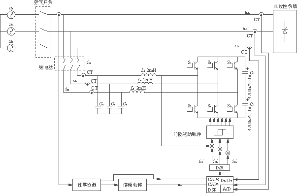 ??? 有源濾波器是目前國內(nèi)外諧波抑制技術(shù)的一個(gè)重要研究方向,在國外APF技術(shù)已得到了大量應(yīng)用。APF技術(shù)的原理就是把三相畸變電流的諧波提取出來作為指令電流,控制PWM主電路產(chǎn)生一反向的諧波電流以補(bǔ)償電網(wǎng)中的諧波電流,因此,三相諧波電流提取的效果直接決定了APF諧波補(bǔ)償?shù)男Ч?