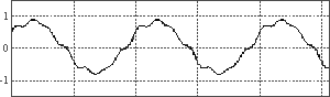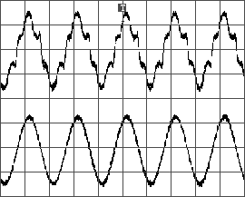 ??? 為了研究基于廣義瞬時(shí)無功電流理論方法的特點(diǎn)和驗(yàn)證上述濾波器的設(shè)計(jì)正確性,用MATLAB仿真了諧波的提取。圖4是輸入畸變電流和提取的基波電流、諧波電流的仿真波形。為了驗(yàn)證實(shí)際的效果,用DSP2407實(shí)現(xiàn)上述運(yùn)算過程。圖5為畸變電流和提取的基波電流波形。圖6為畸變電流和諧波電流波形。