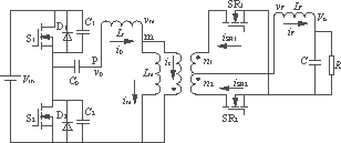 圖1??? 不對(duì)稱半橋DC/DC變換器