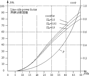 圖9??? GTO電流源型變頻器的網(wǎng)側(cè)功率因數(shù)