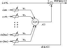 ??? 3)檢測偶次諧波電流取sinωt,cosωt以及sin2kωt,cos2kωt(2≤2k≤n,k為正整數(shù))等作為參考輸入,ANN學習完成之后i2k(t)=w2ks×sin2kωt+w2kc×cos2kωt,就是對應的偶次諧波電流的值。