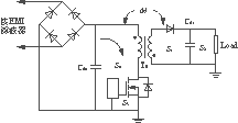 ??? 由于存在高頻變壓器繞制以及原邊與多路副邊繞組不易耦合等諸多困難,在方案選擇上,該電源采取了兩組反激式DC/DC變換器并聯(lián)拓撲,雙芯片電流峰值控制,以減小變壓器體積。鑒于每組變換器功率等級較低,并考慮到充分利用反激式拓撲結構簡單的特點,實際電路采取硬開關工作方式,開關頻率為100kHz。由于是兩組高頻變壓器相互并聯(lián),原邊共用整流橋輸出直流母線電壓,因此,除考慮每組變流器原副邊以及與工頻電網的EMI問題以外,防止兩組變流器相互之間的電磁干擾也是難點之一。