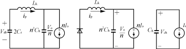 ??? ip(t)=nIo ??? vab(t)= (a)模式5??? (b)模式6??? (c)模式7