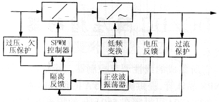 1? 引言 ??? 鈴流電源模塊是一種小功率DC/AC逆變器,多用在通信系統(tǒng)和聲納系統(tǒng)中。前不久,我公司研制了一種高性能鈴流模塊,設計要求在輸入DC36~72V,環(huán)境溫度0~70℃的條件下必須保證穩(wěn)定、可靠地輸出75V 25Hz30VA。在研制過程中,我們發(fā)現(xiàn),過流保護成為影響該鈴流電源的電氣性能和可靠性的關(guān)鍵。 2? 電路原理及限流保護分析 ??? 該鈴流模塊的原理框圖如圖1所示,采用SPWM電路,詳細介紹請參考有關(guān)資料。