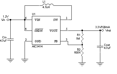 17 AIC3414 datasheet,pdf(1.2MHz, Synchronous Step-Up Converter in SOT23-6)