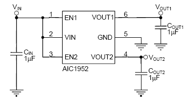 46 AIC1952 datasheet,pdf(Dual Output Low ESR Cap.Low-Dropout 300mA Linear Regulator)
