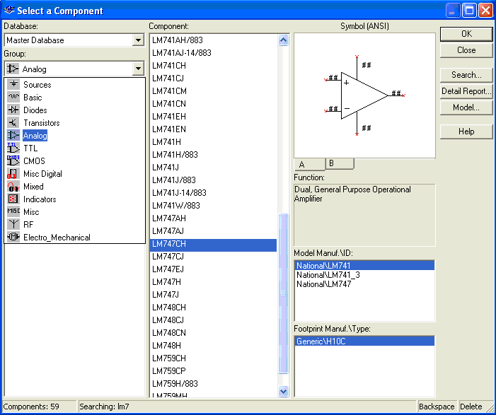 Every schematic begins with the selection and placement of components, and as a result an engineer’s initial task is to search their capture tool’s database for specific components. Many traditional EDA tools are lumbered with disorganized databases that are difficult to navigate. In these tools, component selection is?a hurdle in the design process. In Multisim, all 17,000 components in the master database are logically organized into easy-to navigate groups (Figure 2). These groupings reflect the type of device and functionality, so that components such as diodes are in one group, while op-amps populate a separate analog group. This logical organization mirrors the way most manufacturers present their own parts libraries, providing an intuitive interface that an engineer has encountered many times before.