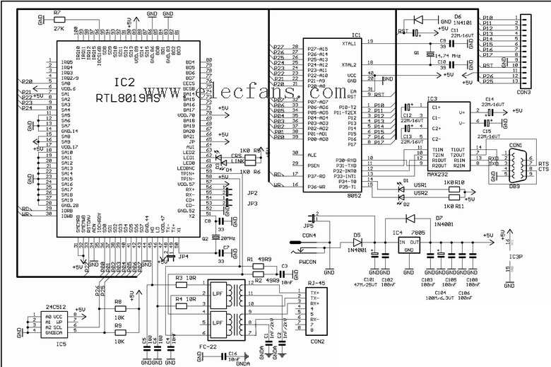 RTL8019AS ISA 10M網(wǎng)卡電路圖:RTL8019AS網(wǎng)卡的電路圖。電路圖為雙端口的網(wǎng)卡(含utp和bnc接口)。有該原理圖,就可以自己制造isa接口的網(wǎng)卡。包含3種格式,一是pdf(擴展名為pdf),一