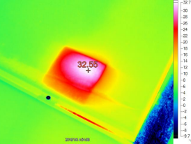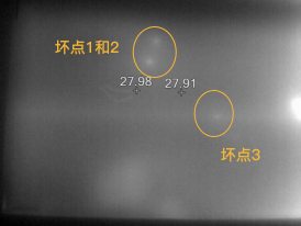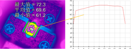 從熱像畫面可清晰看出,芯片的左右側(cè)溫度不均勻,研發(fā)人員可以此為依據(jù),改進(jìn)器件材料和散熱設(shè)計(jì)。