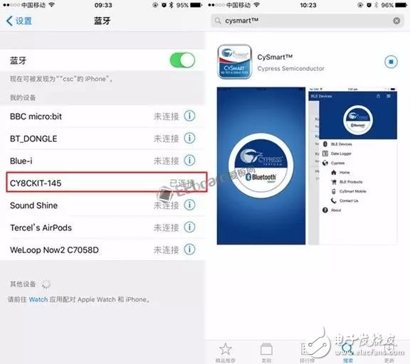 下載完成后就能通過手機(jī)或者賽普拉斯官方提供的CySmart來連接板子的藍(lán)牙。