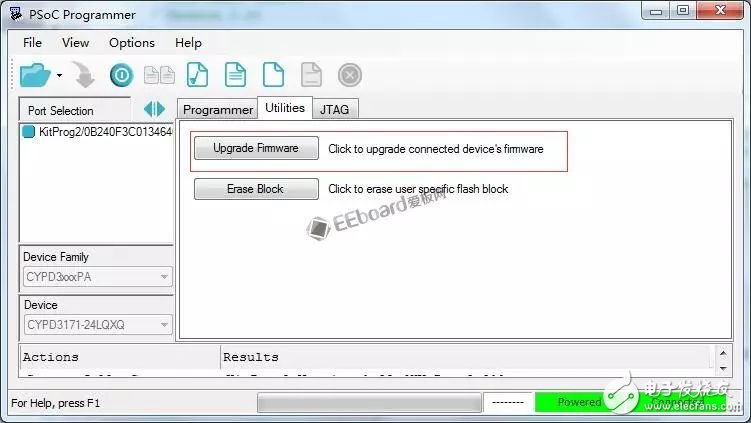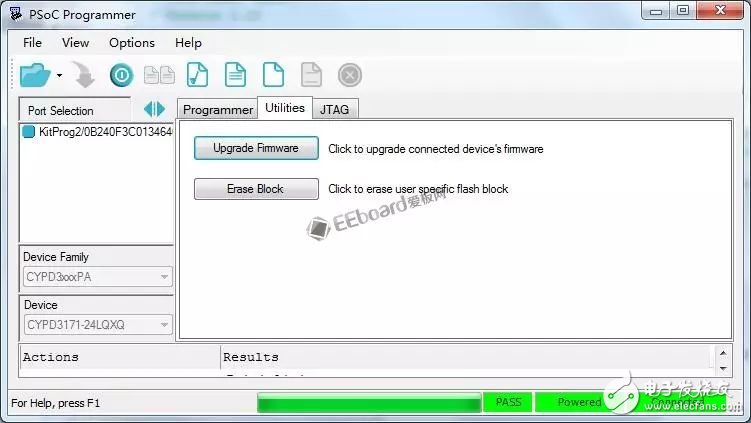而且更新的話必須通過另一個工具PSoC Programmer來實現(xiàn)。