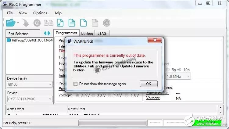 在實際的下載中遇到了點問題,板載的kitprog2調(diào)試器固件版本有點低,低就低吧,居然低了就不能下載,必須要更新。