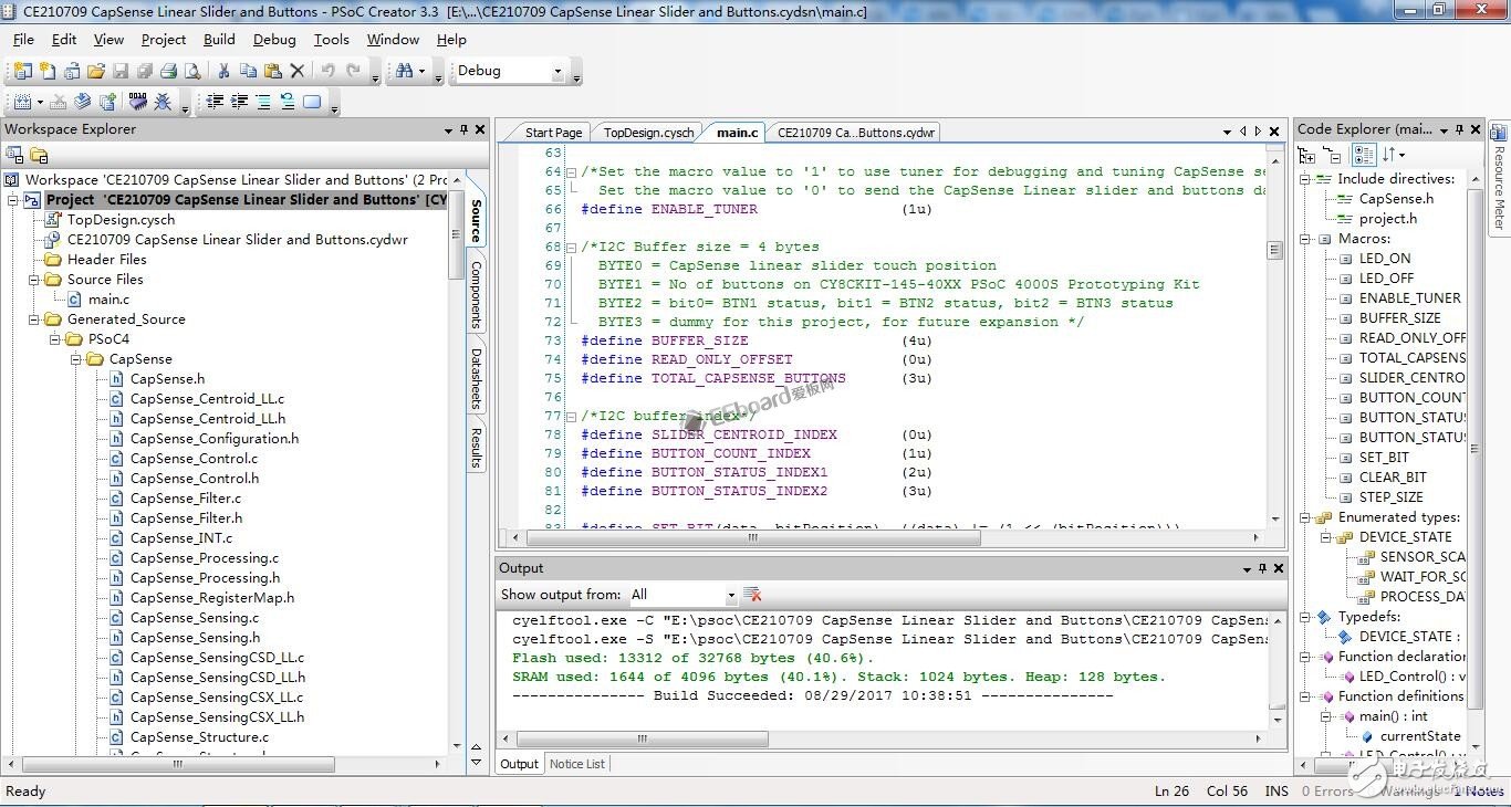 PSoC Creator工具使用十分友好,在先前的PSoC系列開發(fā)板評測中都有介紹,這邊就不啰嗦了。