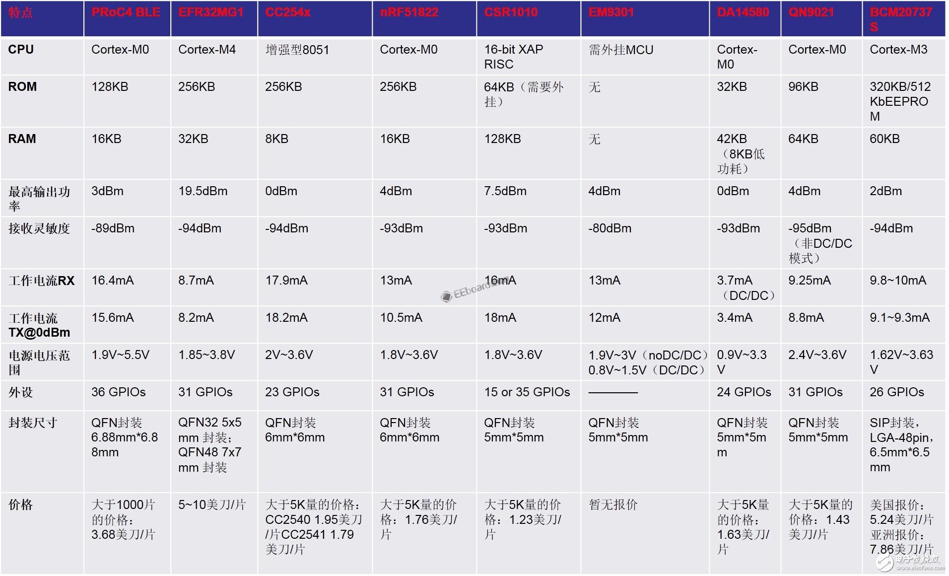 放大看一下,Cypress BLE PRoC模塊,具體型號為CYBLE-022001-00模塊,支持BLE 4.1協(xié)議棧,尺寸只有10mm*10mm*1.8mm,非常小,但是包含了ADC、定時(shí)器、計(jì)數(shù)器功能和支持PWM、I2C、UART、SPI外設(shè),可以通過PSOC的可編程架構(gòu)自己定義。