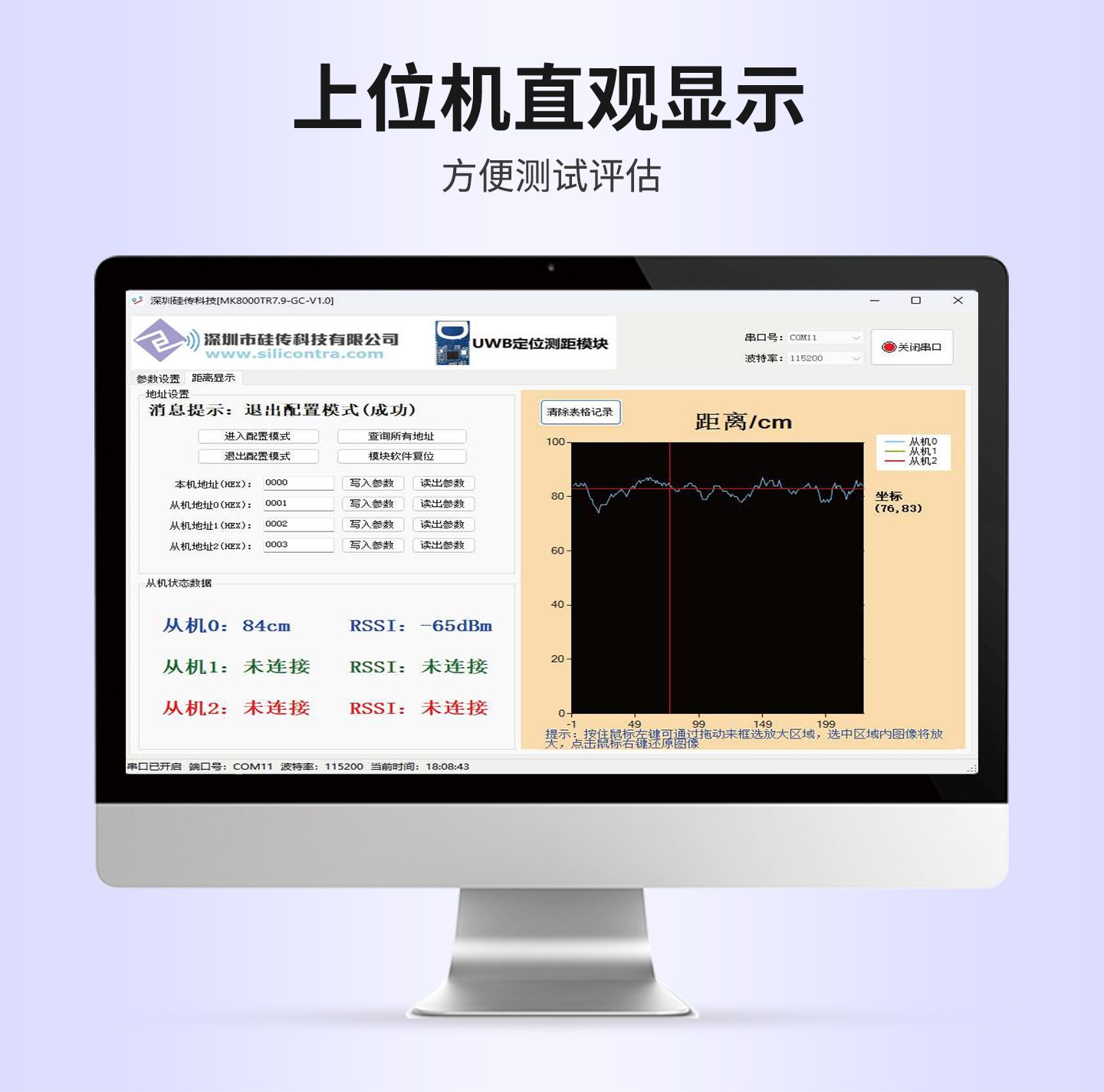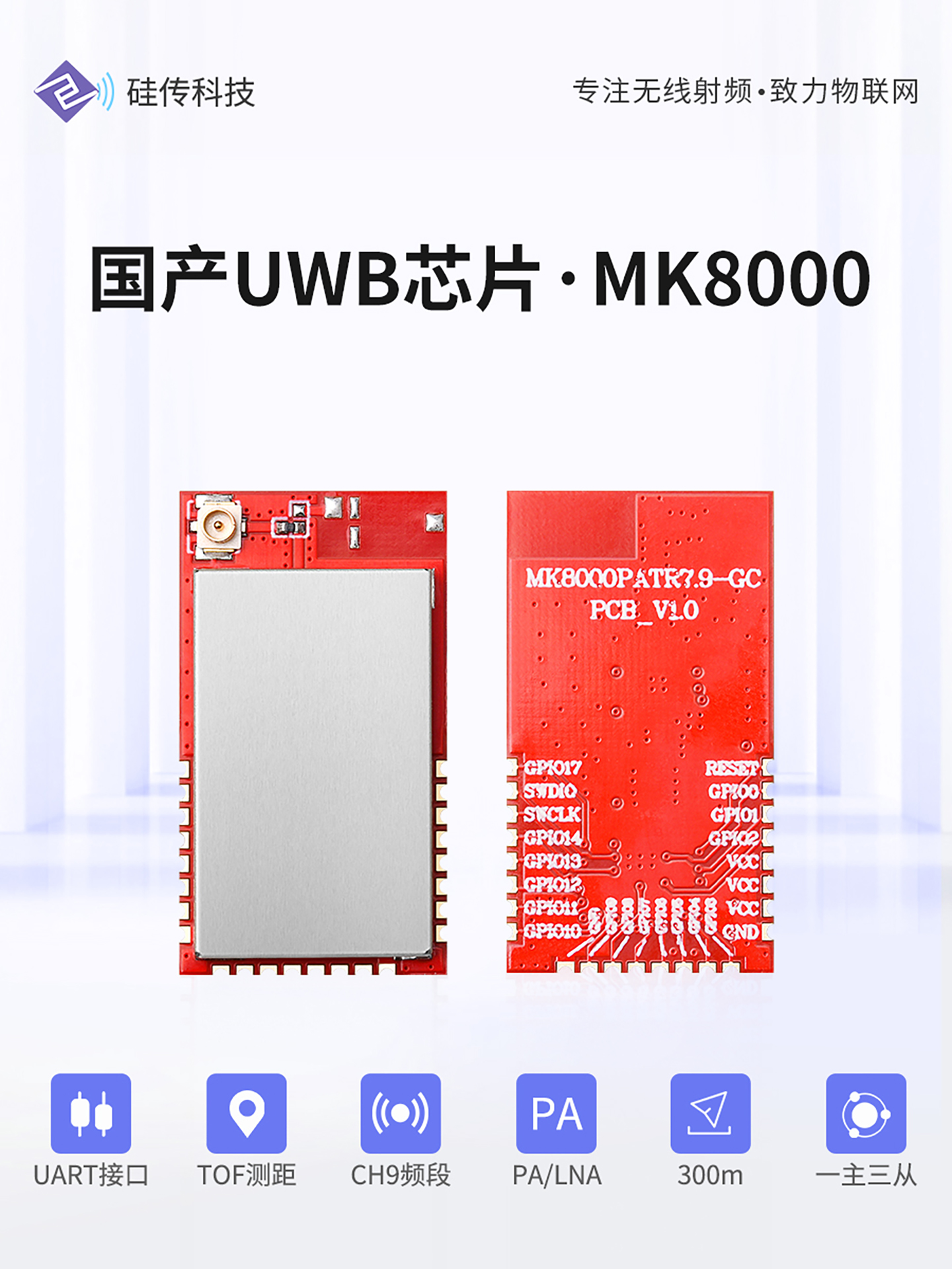 在此背景下,硅傳科技深耕無線 UWB 定位領(lǐng)域,致力于提供一流解決方案,推出的國產(chǎn)高功率無線 UWB 定位模塊 ——MK8000PATR7.9-GC,該模塊不僅測距距離遠、定位精度高,操作還極為簡便,更支持 “一主三從” 的靈活配合模式,為多場景智能化應(yīng)用提供了有力支撐。