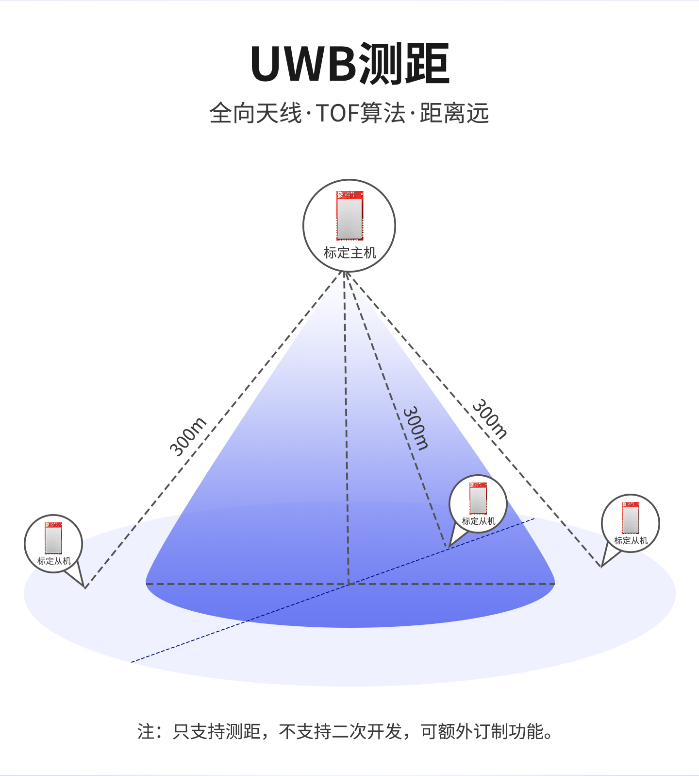 默認固件程序是一主三從配置,且只有測距功能,客戶可以根據(jù)自己應(yīng)用需求訂制相關(guān)配套固件程序,如更多的從機(注意:從機越多,上傳間隔要越久)、需要配套透傳數(shù)據(jù)等,具體可以和硅傳科技公司聯(lián)系。