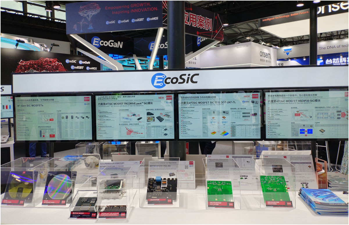 羅姆在展會(huì)現(xiàn)場設(shè)置應(yīng)用案例展區(qū),展示碳化硅與 IGBT 模塊在車載、工業(yè)領(lǐng)域的實(shí)際應(yīng)用: