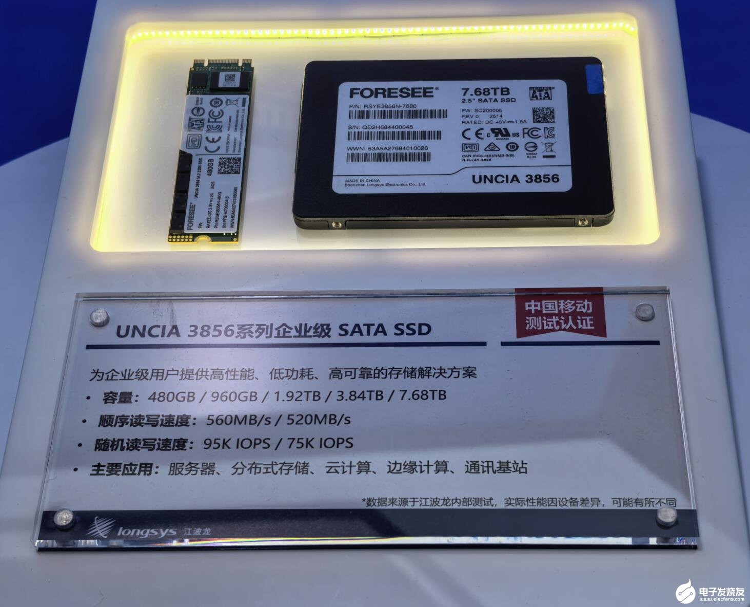 值得特別關注的,據(jù)現(xiàn)場工作人員介紹,此前江波龍企業(yè)級DDR4、UNCIA 3836 SATA SSD都已經(jīng)完成測試認證。而江波龍的UNCIA 3856系列SATA SSD,采用最新的NAND Flash,容量從480GB到最高的7.68TB,性能和可靠性俱佳,接力上一代SATA SSD UNCIA 3836 進入中國移動產(chǎn)業(yè)鏈。