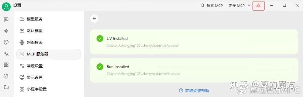 首先,打開Cherry Studio在軟件的“MCP服務器”管理頁面,安裝好UV和Bun。