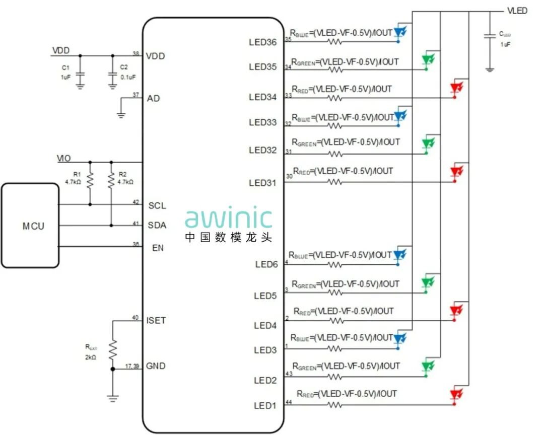 圖2 36路呼吸燈驅(qū)動典型應(yīng)用圖
