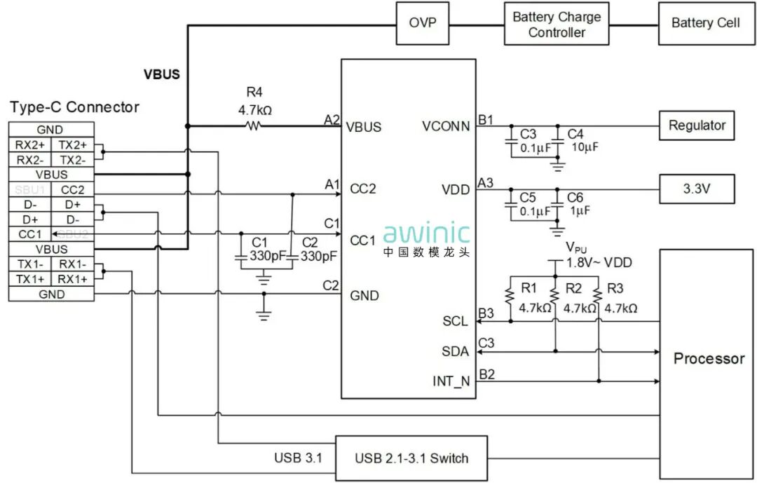 圖7USBType-C協(xié)議芯片典型應(yīng)用圖