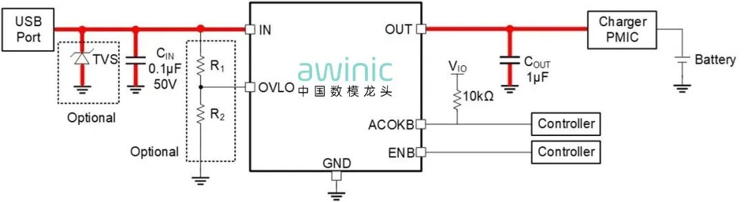 圖5 過壓保護(hù)芯片典型應(yīng)用圖