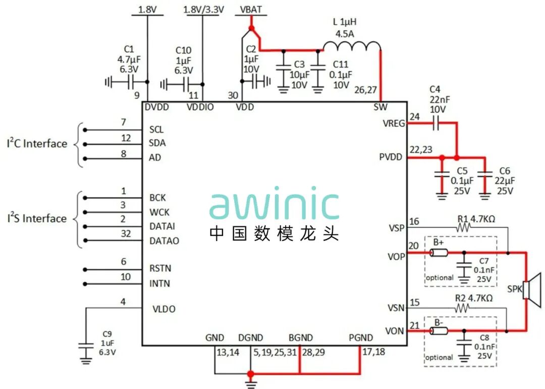 圖3 SmartK數(shù)字音頻放大器典型應(yīng)用圖