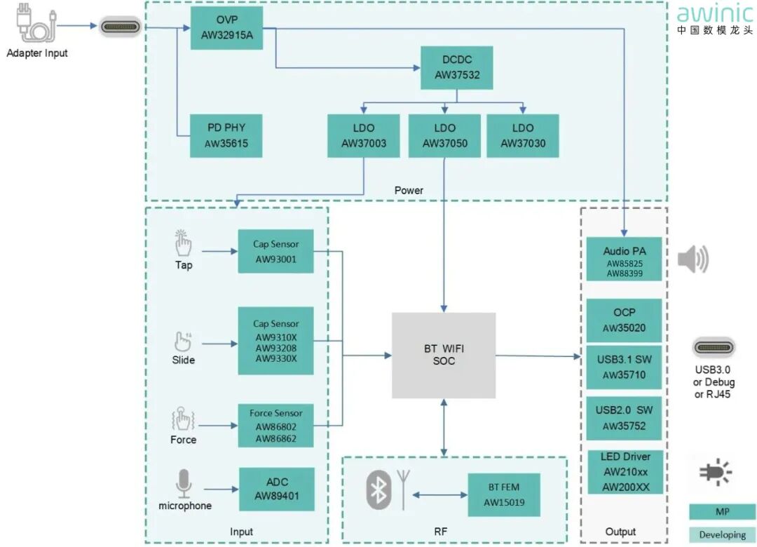艾為在AI智能家具HUB產(chǎn)品上,除了上述4類產(chǎn)品外,還有如下框圖中的產(chǎn)品應(yīng)用: