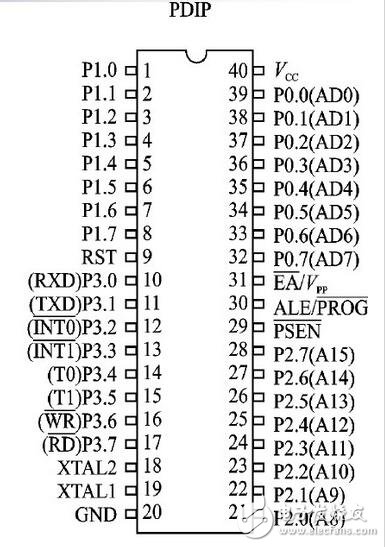 一、89C51單片機(jī)PDIP(雙列直插式)封裝引腳圖: