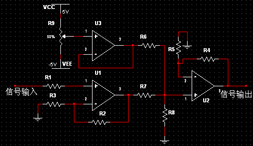 ?????? R1,R2分別由一個模擬開關CD4051來連接不同的電阻,不同的R1,R2通過公式: 這樣就可以實現(xiàn)程控放大功能了??烧{電阻R9用來設置信號調理電路加入的直流分量的大小。放大后的信號和直流分量最后由U3模擬加法器疊加后輸出。
