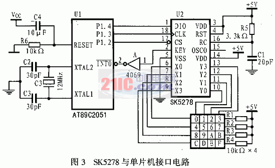 11 文中給出了串行接口鍵盤控制器SK5278的特點(diǎn)、管腳說明和使用方法,并以AT89C2051單片機(jī)為例給出了相應(yīng)的接口電路及相應(yīng)程序 。