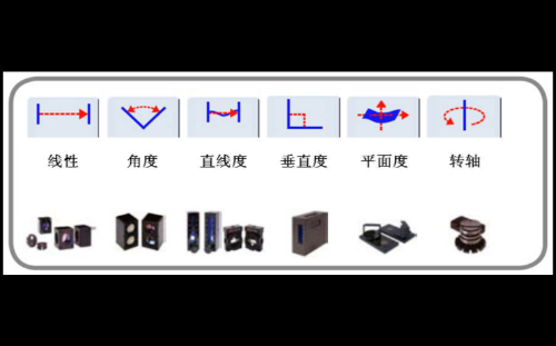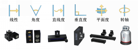 依次為線性鏡組、角度鏡組、直線度鏡組、垂直度鏡組、平面度鏡組、自動精密轉(zhuǎn)臺