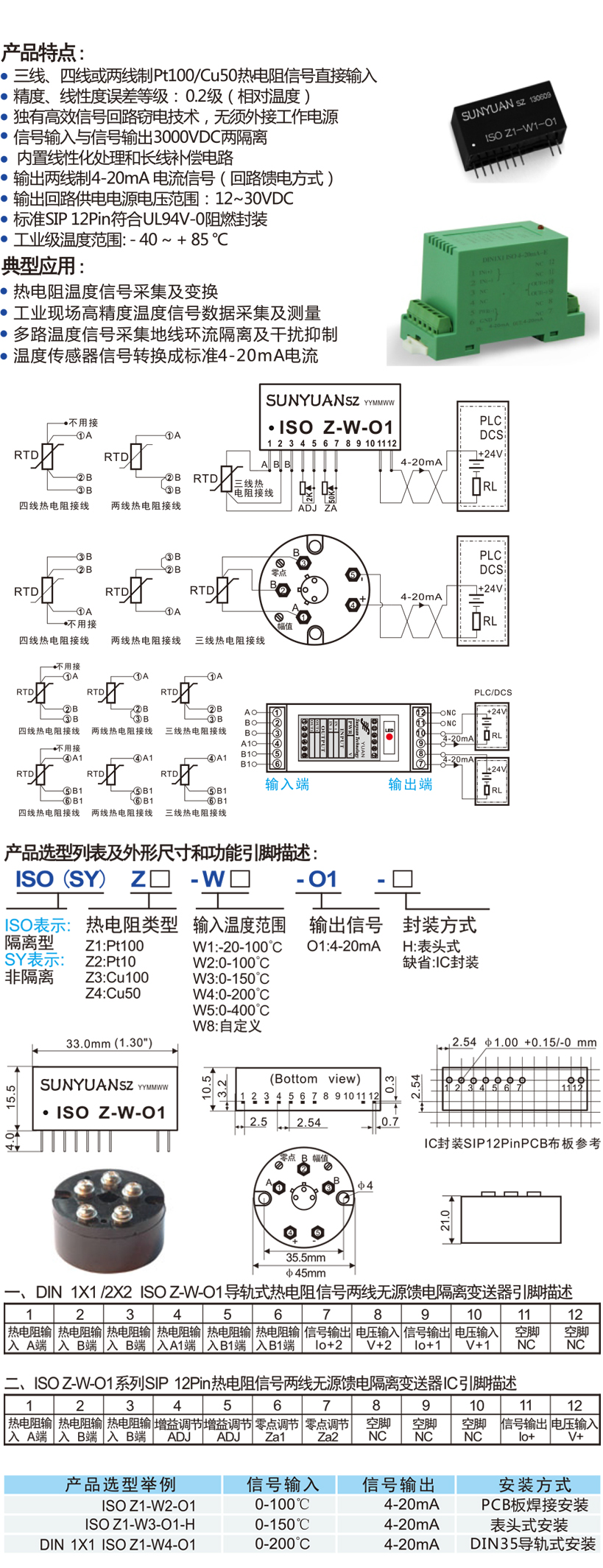 Pt100/Cu50 -20-100℃,0-100℃,0-150℃,0-200℃,0-400℃熱電阻溫度信號4-20mA隔離變送器