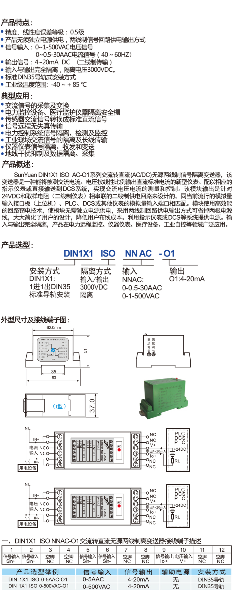產(chǎn)品型號:ISOC 124P 精度:0.01級 溫度范圍:-45-+85 隔離電壓:3000v 輸入輸出:±10v 帶寬:50KHz -