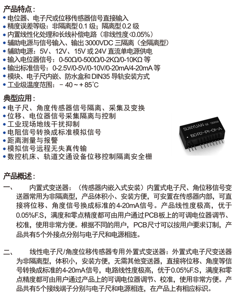 產(chǎn)品型號:ISOC 124P 溫度范圍:-45-+85 精度:0.01級 耐壓:3000v 應用:儀器儀表與傳感器信號收發(fā) 帶寬:50KHz -