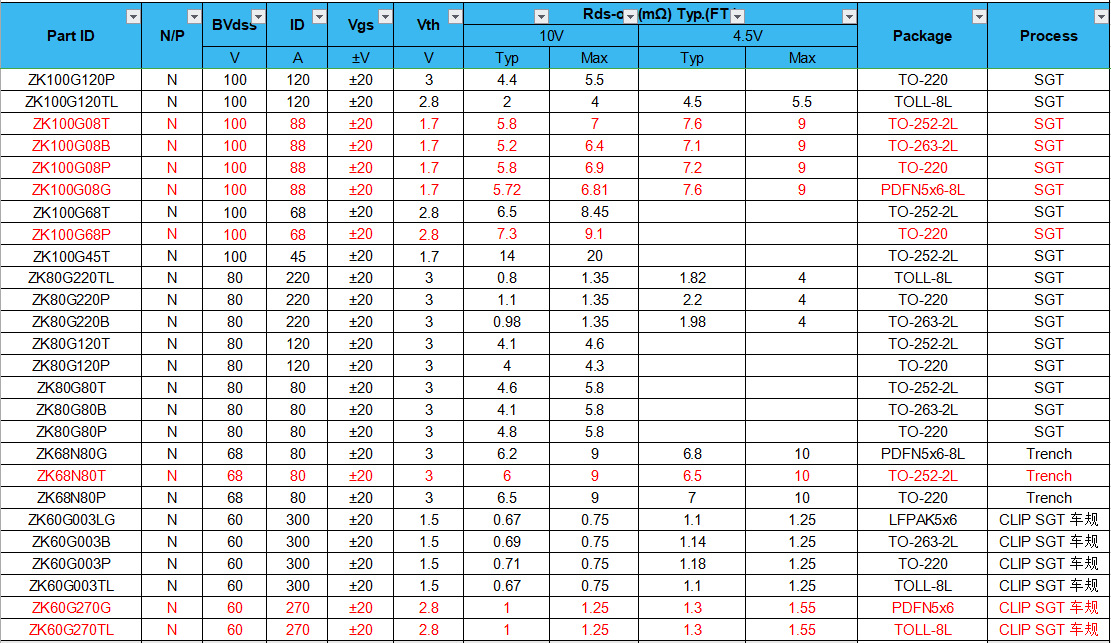 產(chǎn)品型號(hào):ZK60G270G 封裝:PDFN5x6 批次:2025+ BVDSS:60V Id:270A -