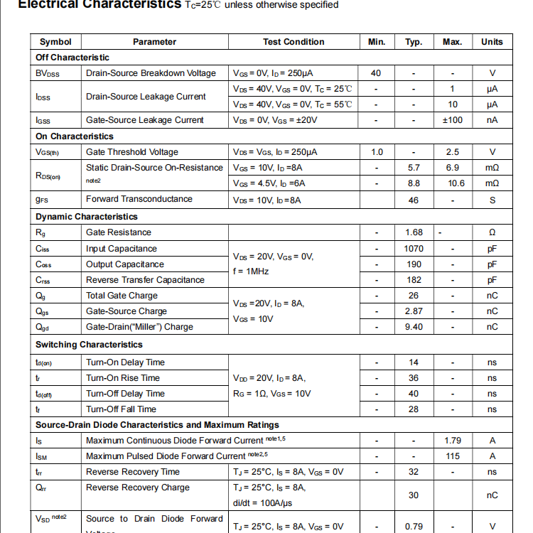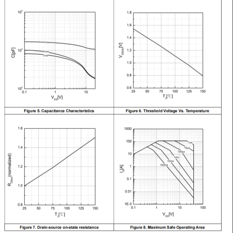 ?導通電阻?:在VGS為10V,ID= 8A時,RDS(ON)為5.7mΩ,在VGS為4.5V,ID= 6A時,RDS(ON)為8.8mΩ,表現(xiàn)出較低的導通電阻,有利于減少能量損耗和提高效率;