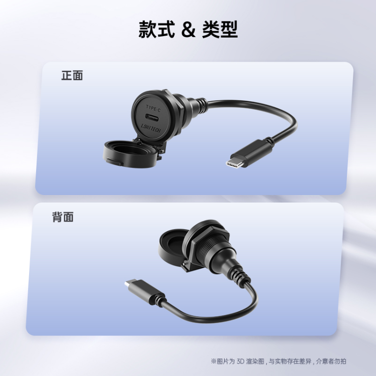 LSHITECH龍仕適配于M22.5開孔的螺紋式type-c接口,外觀精致,板后安裝搭配后螺母鎖緊,結(jié)構(gòu)穩(wěn)固,無(wú)懼日常使用中的輕微震動(dòng)與外力拉扯,如同給接口穿上了一層堅(jiān)固的鎧甲。其外觀線條硬朗,充滿工業(yè)質(zhì)感,黑色主體沉穩(wěn)大氣 ,表面經(jīng)過(guò)特殊工藝處理,耐磨耐刮,長(zhǎng)久使用也不易出現(xiàn)劃痕與磨損。產(chǎn)品還提供定制服務(wù),線長(zhǎng)、規(guī)格可隨心定制,專屬適配輕松拿捏~