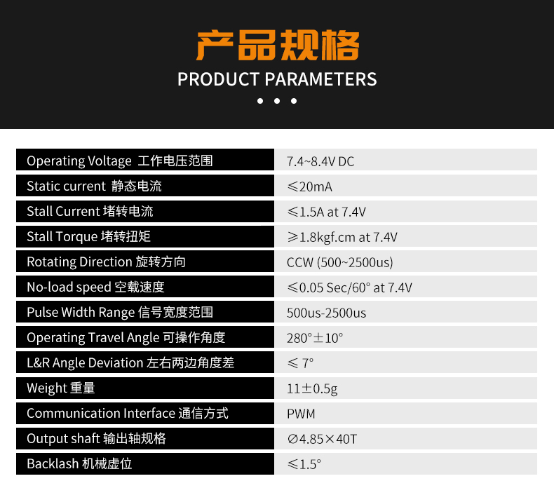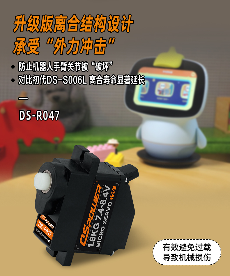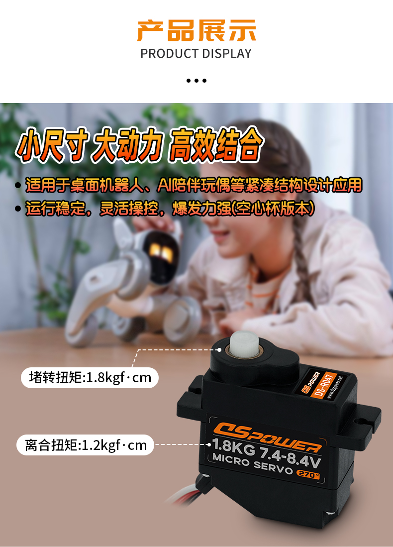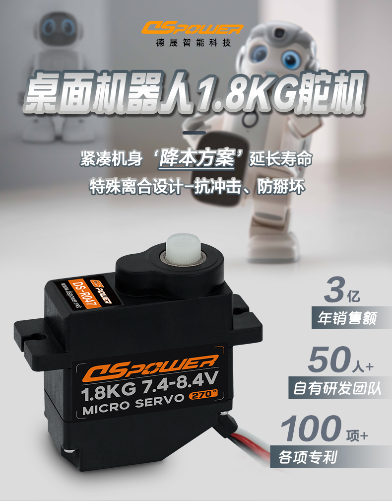 1.8KG微型舵機(jī)毛絨寵物抗沖擊順滑靜音伺服器桌面機(jī)器人離合舵機(jī)