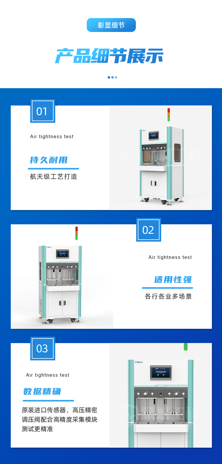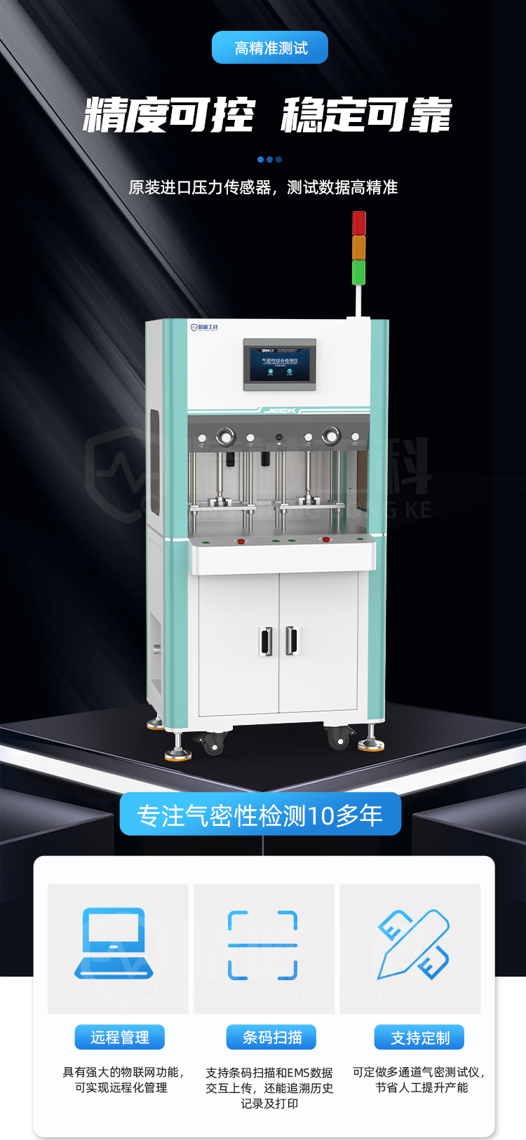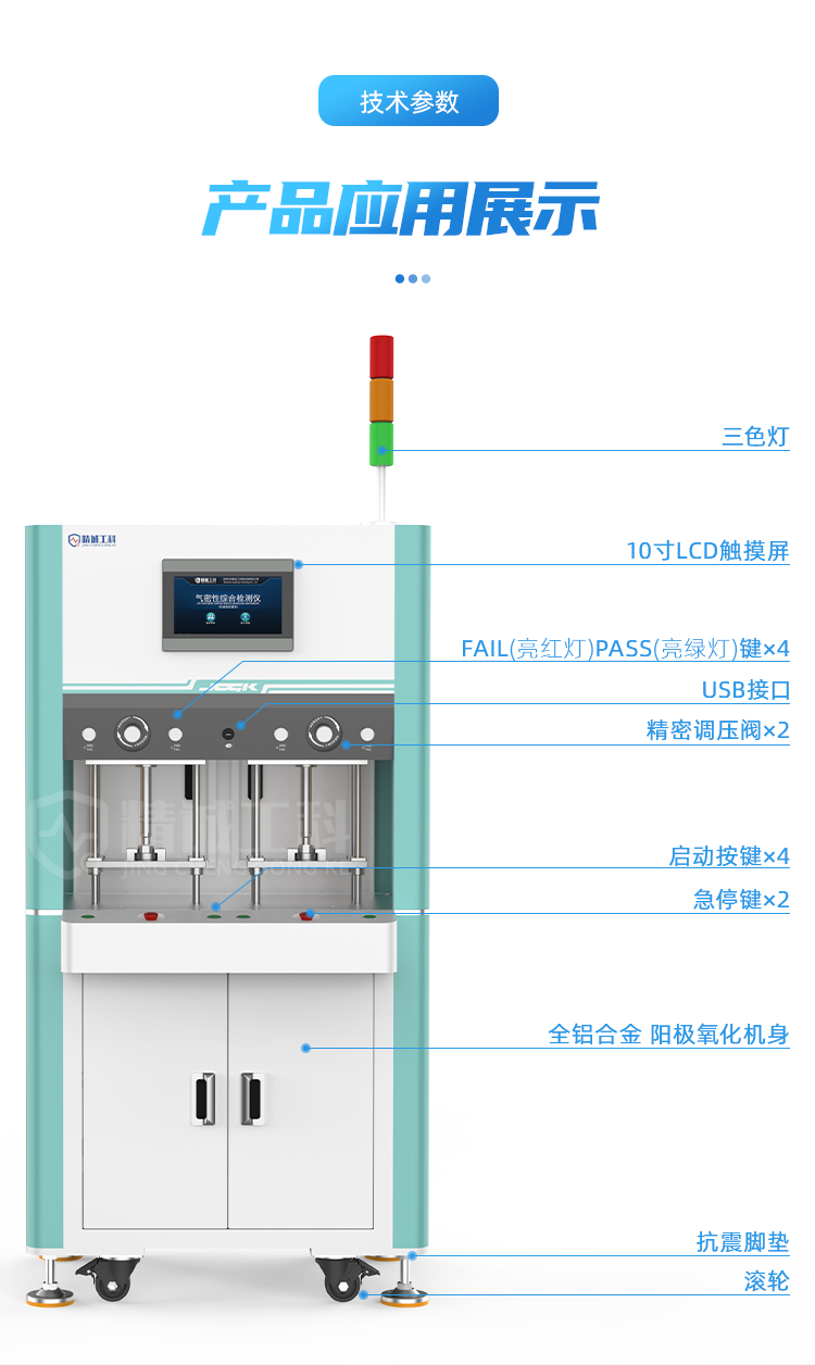 精誠工科雙工位氣密性測試設(shè)備:采用容積定量測試原理,適用于任何全封閉、密閉式產(chǎn)品,雙工位(雙通道)可同時測試兩款產(chǎn)品,支持定制,各通道獨立分析,兼容敞開式產(chǎn)品的防水性能、氣密性泄漏測試。