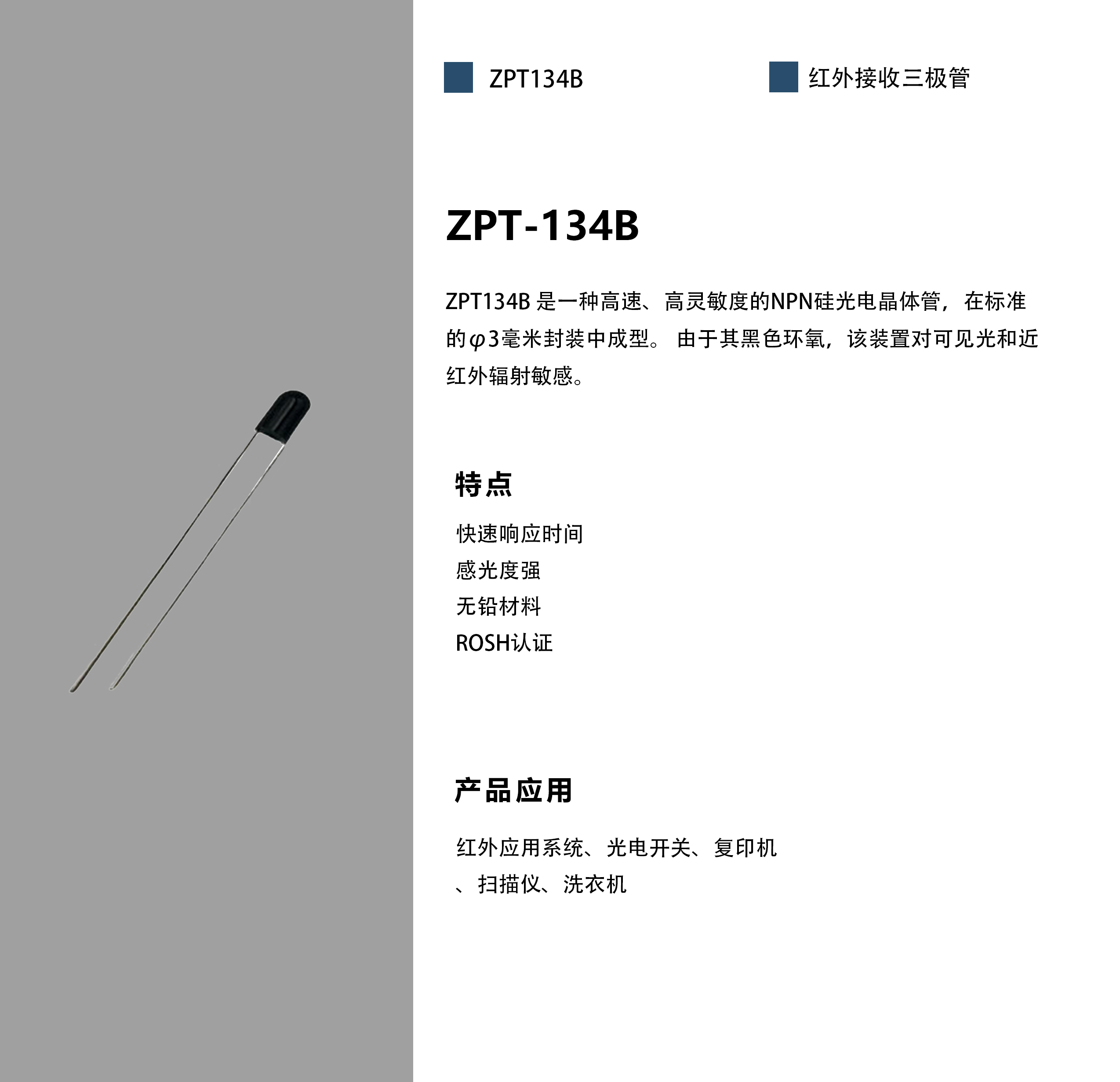 ZPT134B是一種高速、高靈敏度的 NPN 硅光電晶體管,在標(biāo)準(zhǔn)的φ3 毫米封裝中成型。 由于其黑色環(huán)氧,該裝置對(duì)可見(jiàn)光和近紅外輻射敏感。