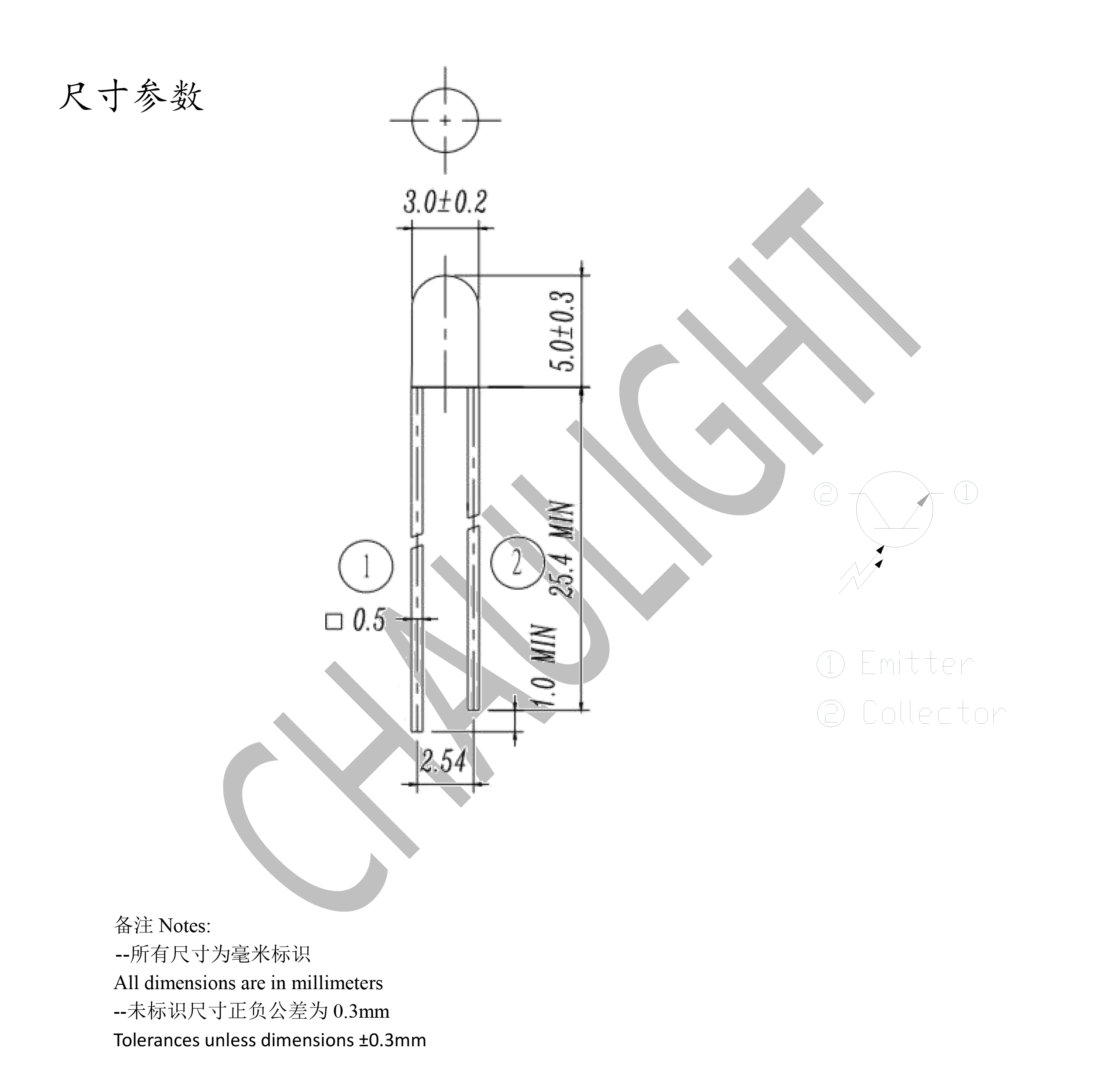 產(chǎn)品型號(hào):ZPT134B 規(guī)格參數(shù):φ3 毫米 功率:75 MW 工作溫度:-25~+85℃ 儲(chǔ)存溫度:-40~+100℃ -