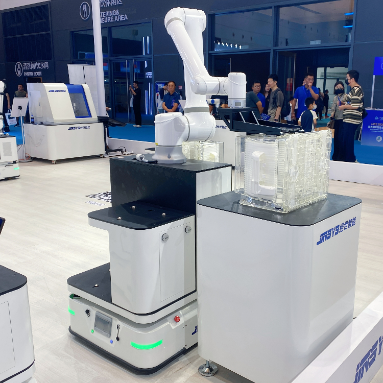經(jīng)世智能復(fù)合機(jī)器人在智慧實(shí)驗(yàn)室行業(yè)主要應(yīng)用于實(shí)驗(yàn)樣本自動(dòng)化轉(zhuǎn)運(yùn)、高通量實(shí)驗(yàn)流程銜接、危險(xiǎn)物料與廢棄物處理等環(huán)節(jié),通過“AGV移動(dòng)底盤+協(xié)作機(jī)械臂+視覺系統(tǒng)”一體化控制方案實(shí)現(xiàn)高效自動(dòng)化作業(yè)。機(jī)器人機(jī)械臂末端可定制末端夾具,車身可定制物料緩存架。應(yīng)用場景1、實(shí)驗(yàn)樣本自動(dòng)化轉(zhuǎn)運(yùn)可自主完成試管、培養(yǎng)皿等實(shí)驗(yàn)材料的精準(zhǔn)抓取與跨區(qū)域轉(zhuǎn)運(yùn)。如生物實(shí)驗(yàn)室中,機(jī)器人將樣本從存儲(chǔ)區(qū)運(yùn)送至檢測儀器。2、高通量實(shí)驗(yàn)流程 -