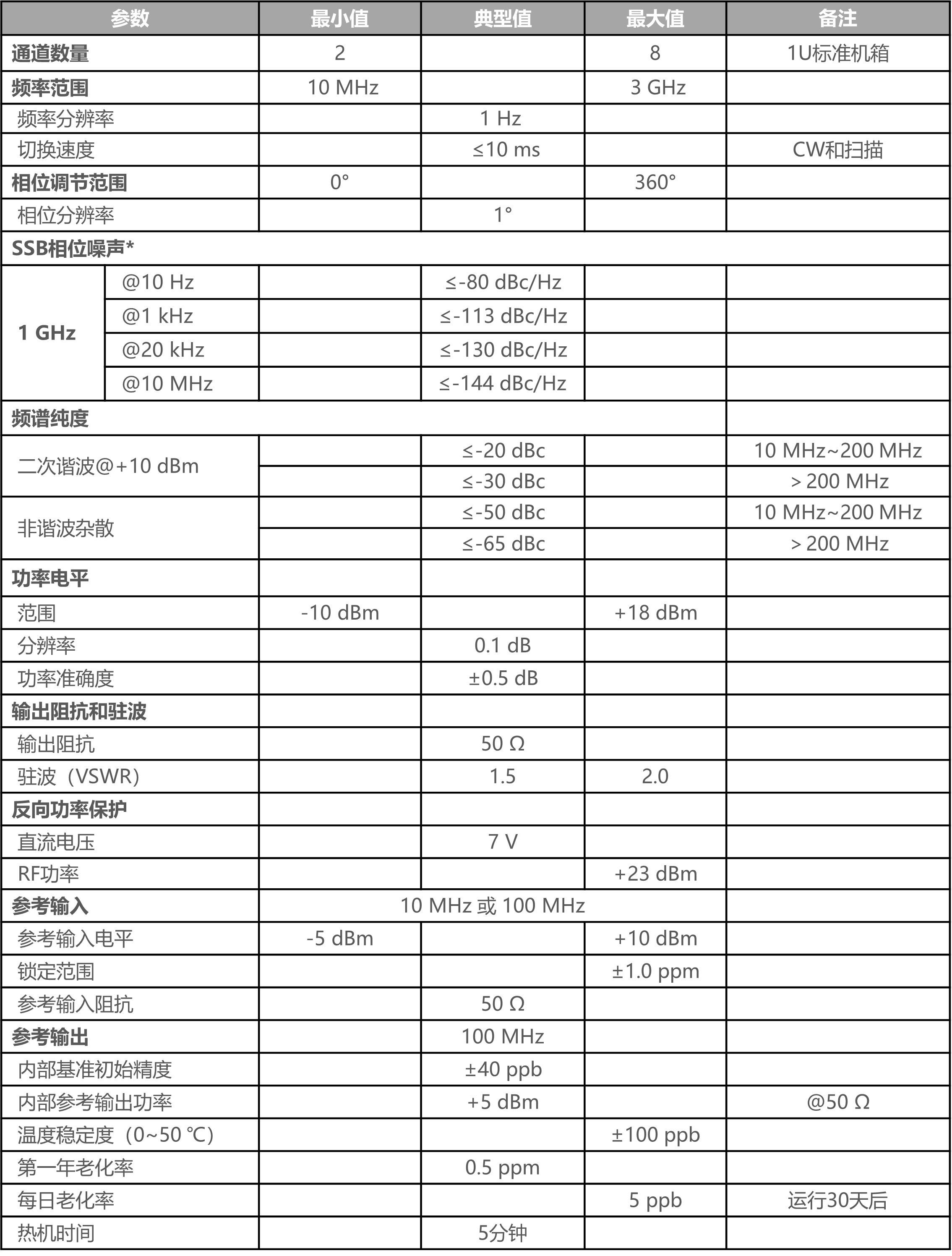 - 極低相位噪聲:≤-130dBc/Hz@20kHz(1GHz)