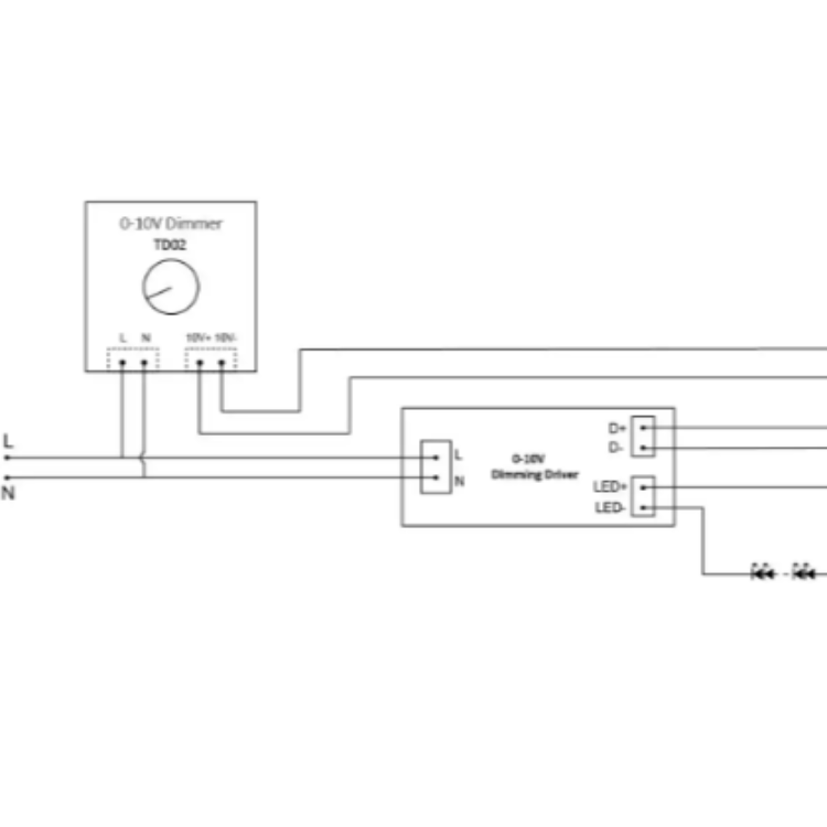 - 調(diào)光原理1:燈管電源設(shè)計(jì)帶有控制芯片,接入 0-10V 調(diào)光器時(shí),可通過(guò) 0-10V 電壓變化改變電源輸出電流,從而調(diào)節(jié)燈光亮度。當(dāng)電壓為 0V 時(shí),燈光關(guān)閉;電壓為 10V 時(shí),燈光亮度達(dá)到 100%。