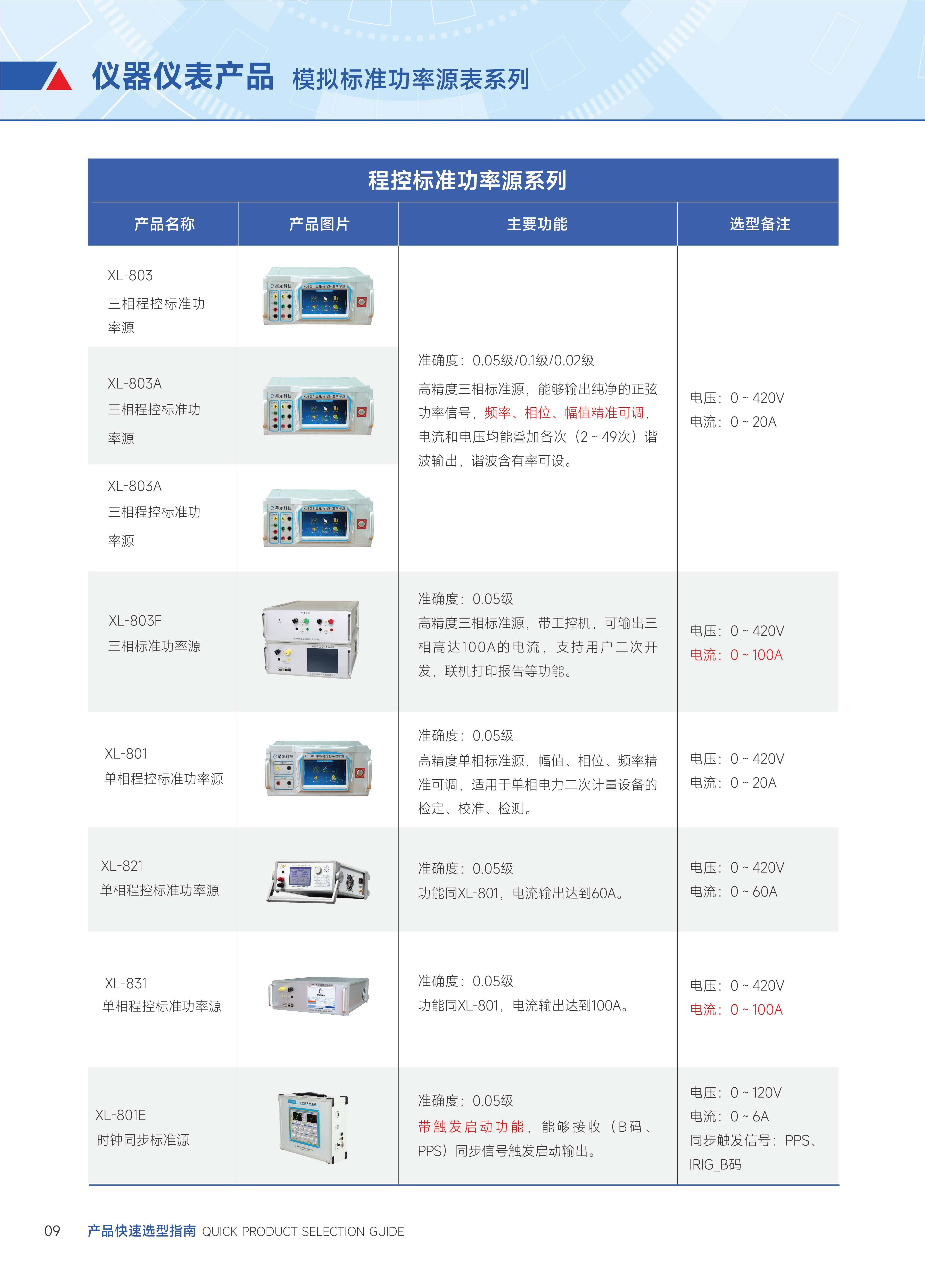 XL-803A三相程控標準功率源系列可作為交流標準電壓源、交流標準電流源、交流標準功率源,輸出可疊加最高49次諧波,準確度等級0.1級/0.05級/0.02級,可用于交流量檢測、校準,適用于電力部門、計量部門、質(zhì)檢部門、科研單位、高等院校及電能表、配電終端、用電管理、負荷控制、電能質(zhì)量、無功補償?shù)壬a(chǎn)研發(fā)企業(yè)。