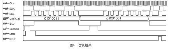 電平,控制總線暫停。 當(dāng)主節(jié)點要求總線暫停時亦可采用同樣的方法。圖1是CPLD向外圍I2C器件發(fā)送01010011 和01001001這兩個數(shù)據(jù)的情況。 3 在MaxplusII環(huán)境下I2C串行擴(kuò)展IP核