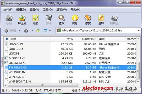 下完后用壓縮軟件,例如winrar,或者其他可以打開iso文件的軟件打開,根目錄有一個(gè)system.gho文件,這是大白菜鏡像文件,3個(gè)多G,請(qǐng)拷到你做好的U盤空間,和正??截愐粯?。